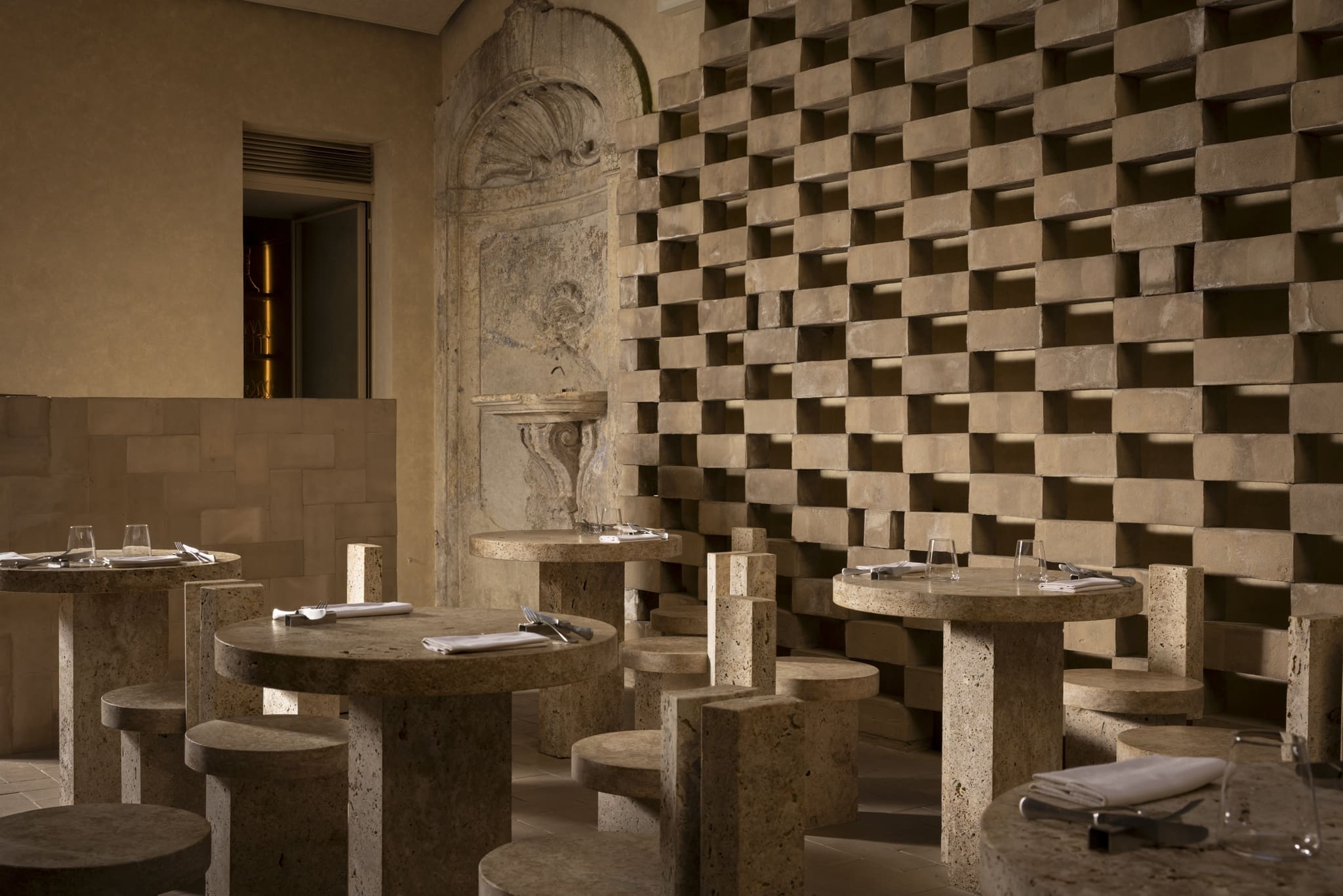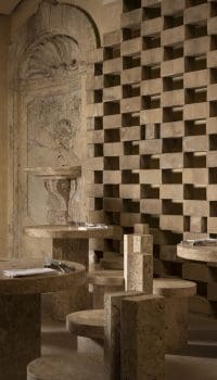 travertine totems like ancient columns tell the story of the art of taste
